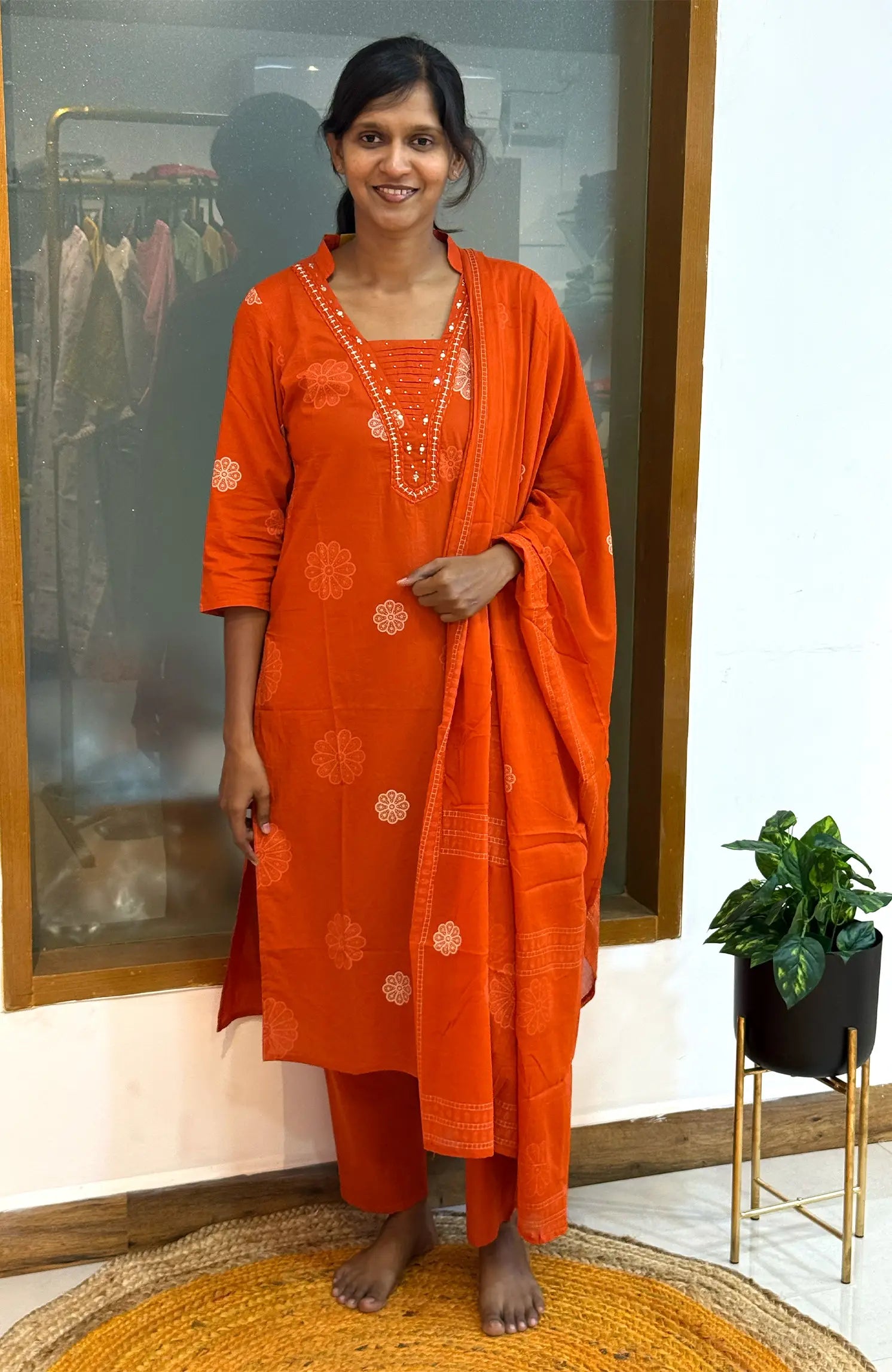 Embrace effortless comfort with the Evening Sun 556 — a breathable cotton set crafted for everyday casual wear. Featuring classic block prints and a structured high-collared neckline, this straight-cut top and pants duo offers a perfect blend of tradition, comfort, and modern simplicity.
