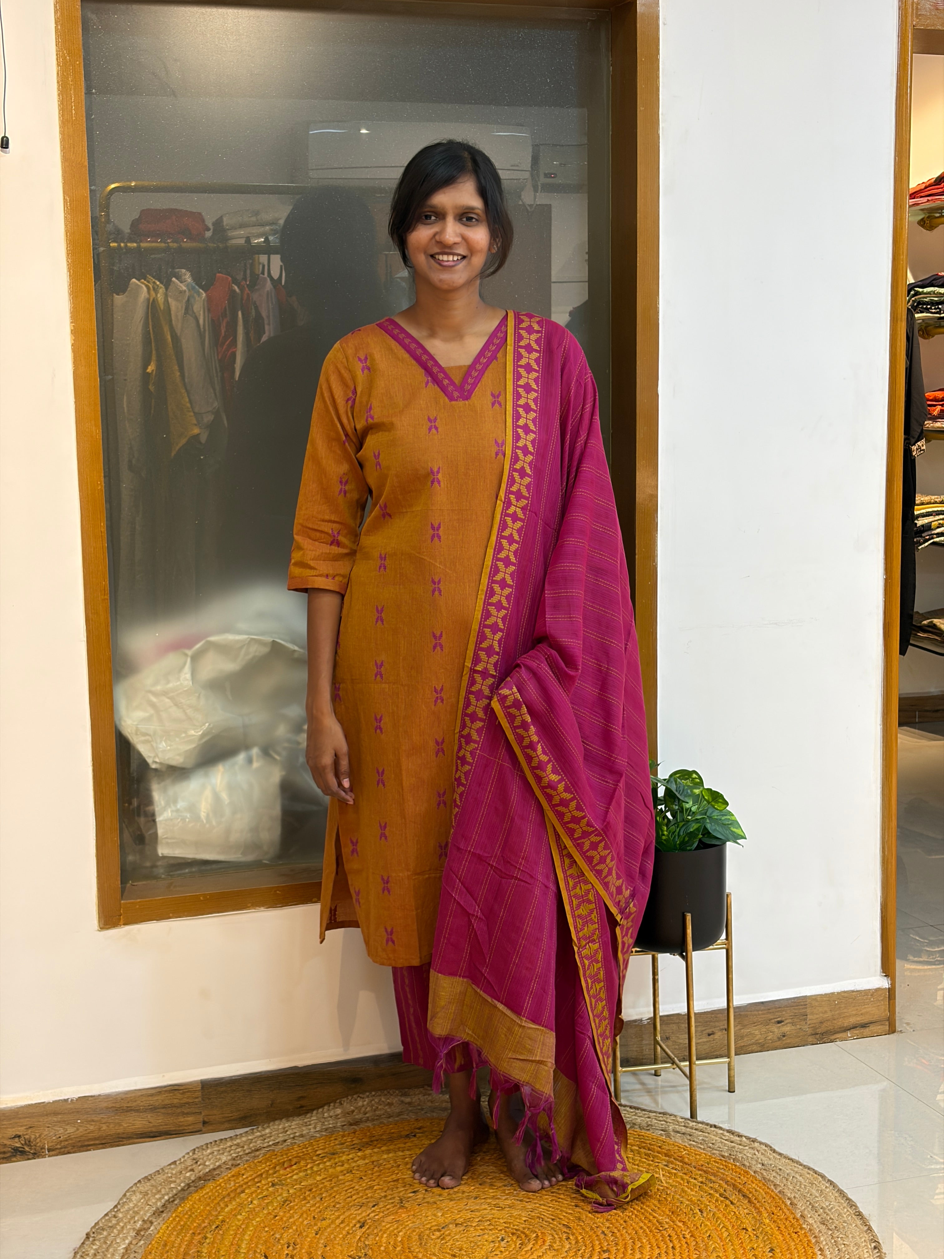 A beautiful blend of tradition and modern simplicity, this cotton set is a versatile addition to your wardrobe — ideal for effortless daily styling and polished office looks.