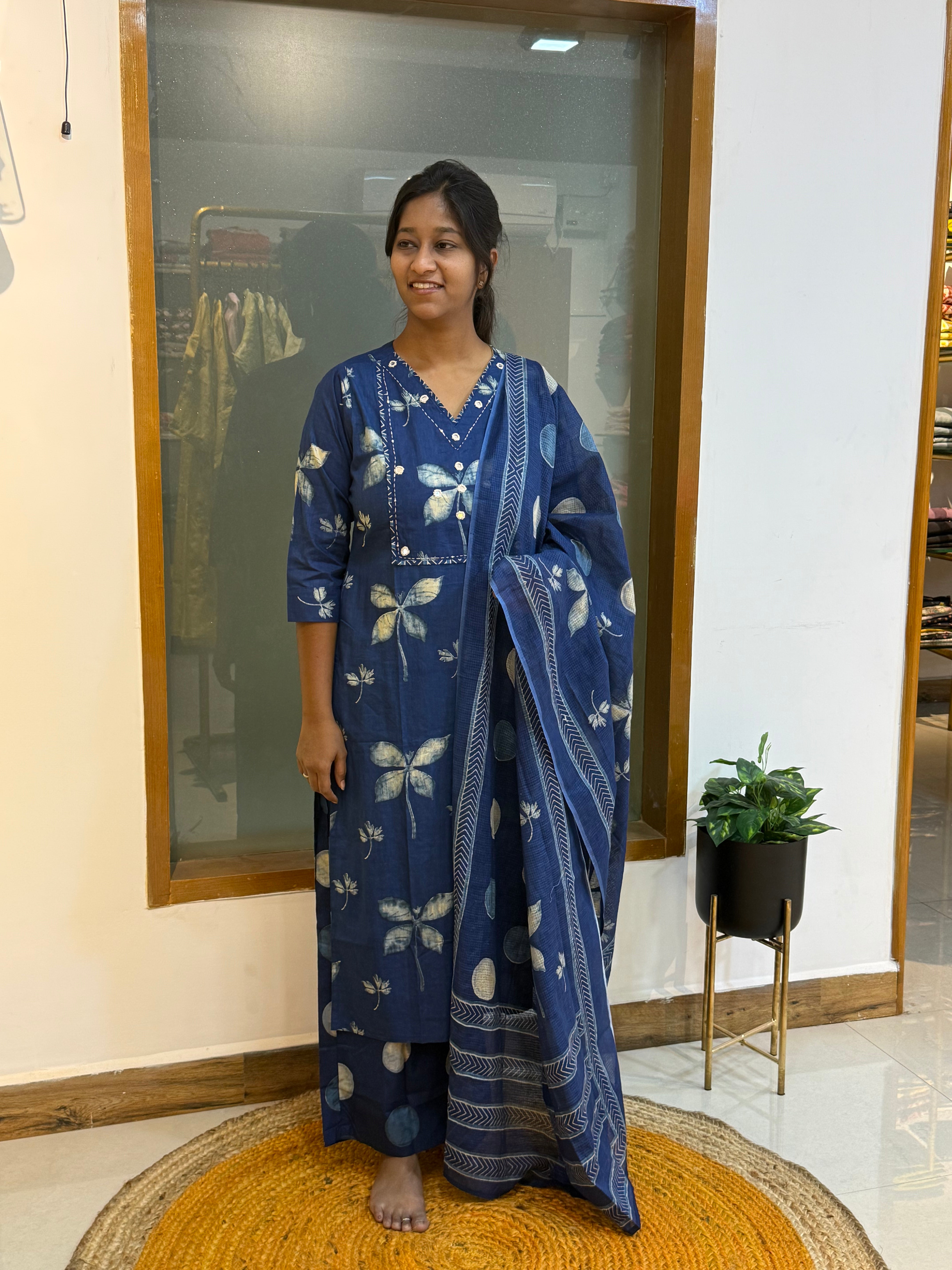Stay cool and stylish this season with our Blue Cotton Set with Kota Shawl. Crafted from very soft and breathable cotton, this outfit is a perfect must-try for summer.