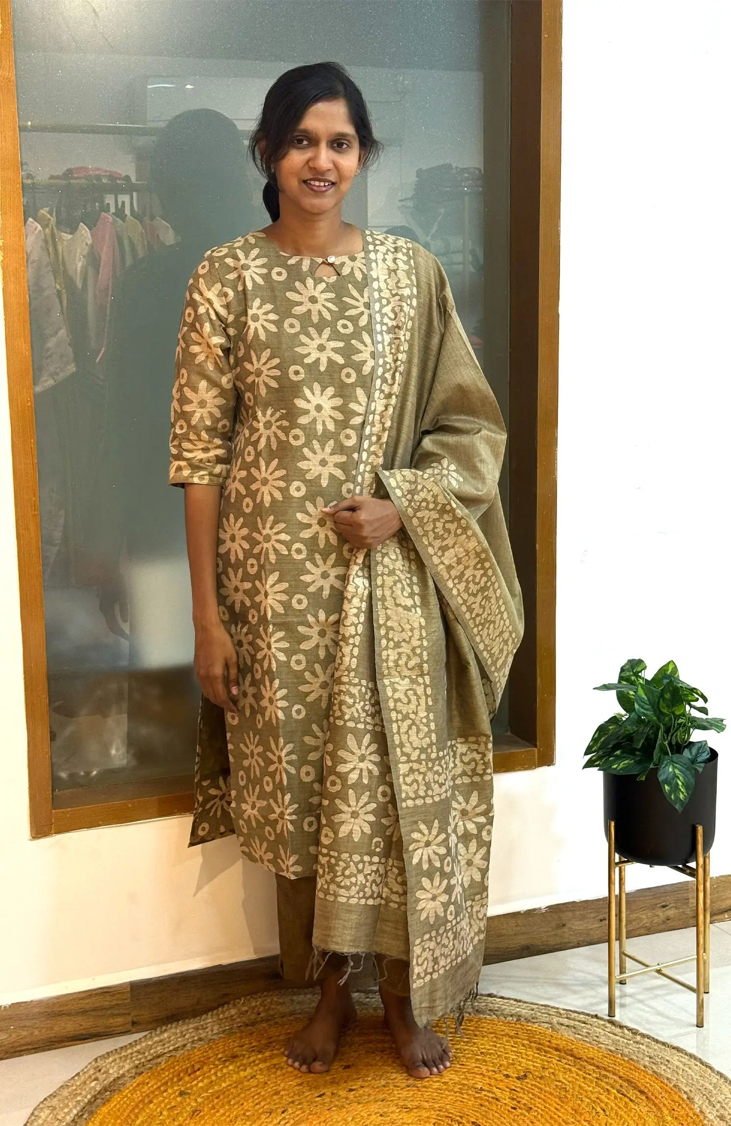 Step into subtle elegance with the Pale Green 557B — a beautifully crafted jute-cotton set designed for comfortable and graceful everyday wear. Featuring classic block prints and a straight-cut silhouette, this outfit delivers a polished ethnic look perfect for casual office days and effortless styling.